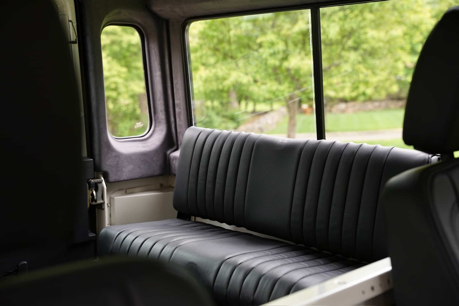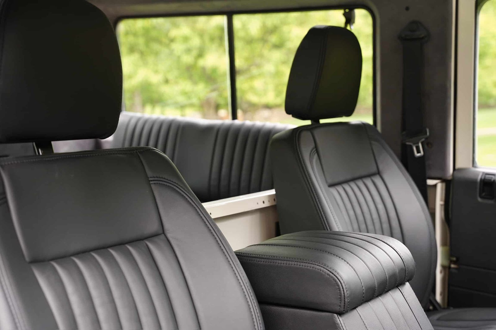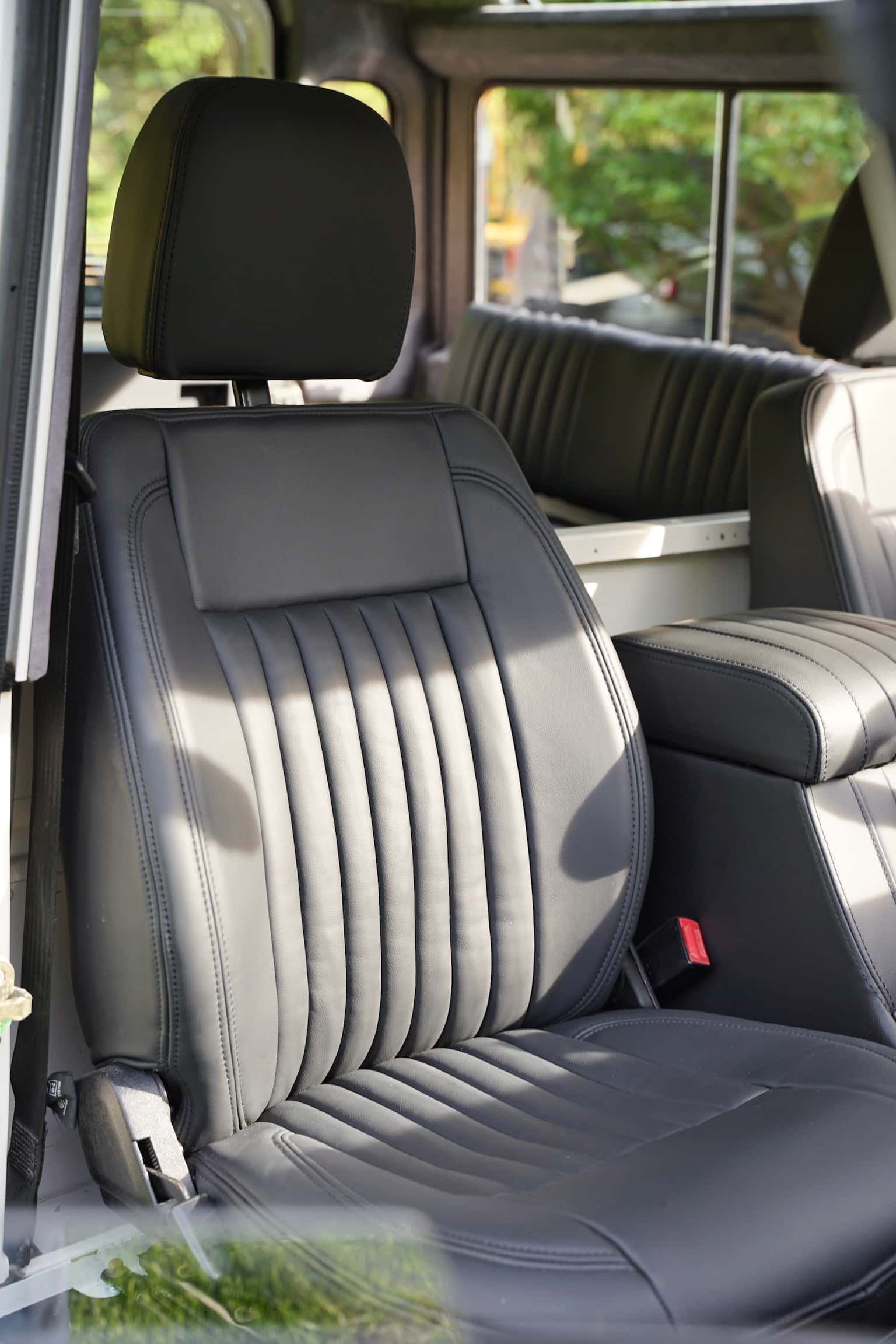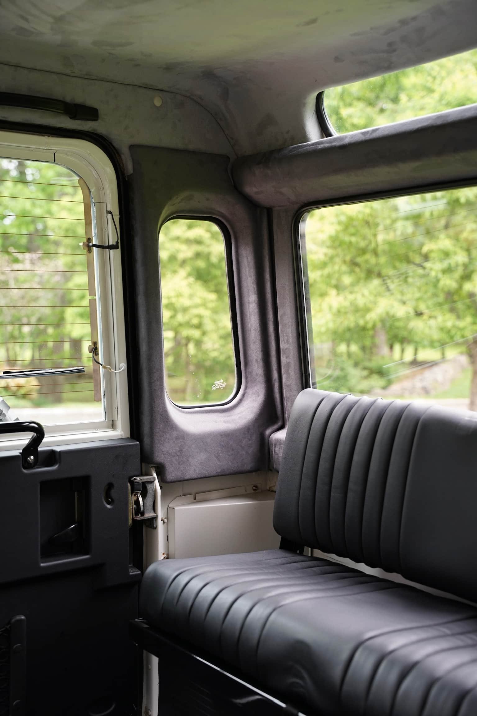 The interior of this 90 was tastefully upgraded with custom Lucari Solutions leather front seats, center console and 4 x inward-facing safari-style rear jump-seats.