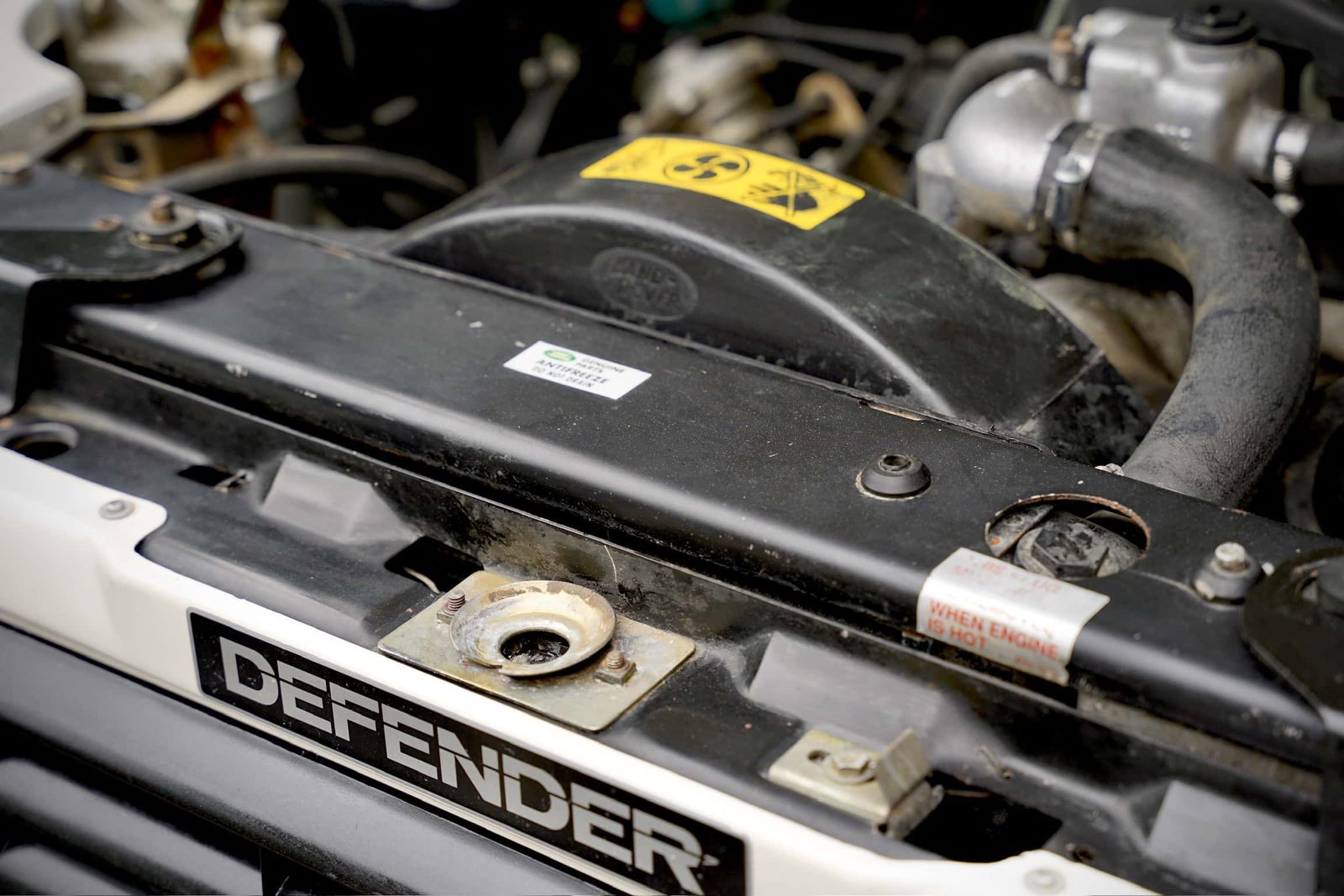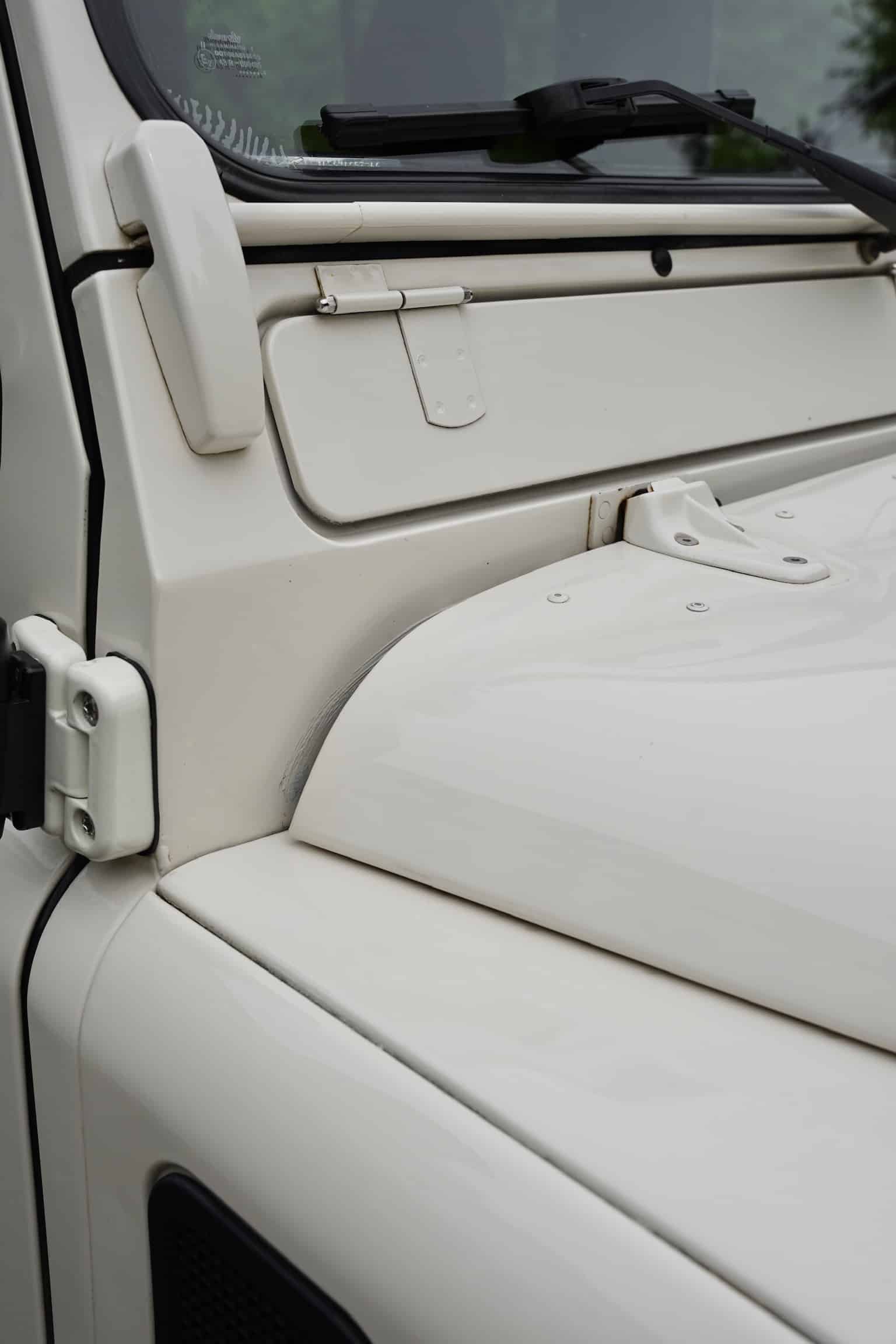 This example boasts “survivor” status, as it maintains its original factory Alpine White finish, superbly preserved and free of major corrosion, a near universal ailment for Defenders of this age. All hardware, steel brackets and supports were treated and refinished to prevent further corrosion.