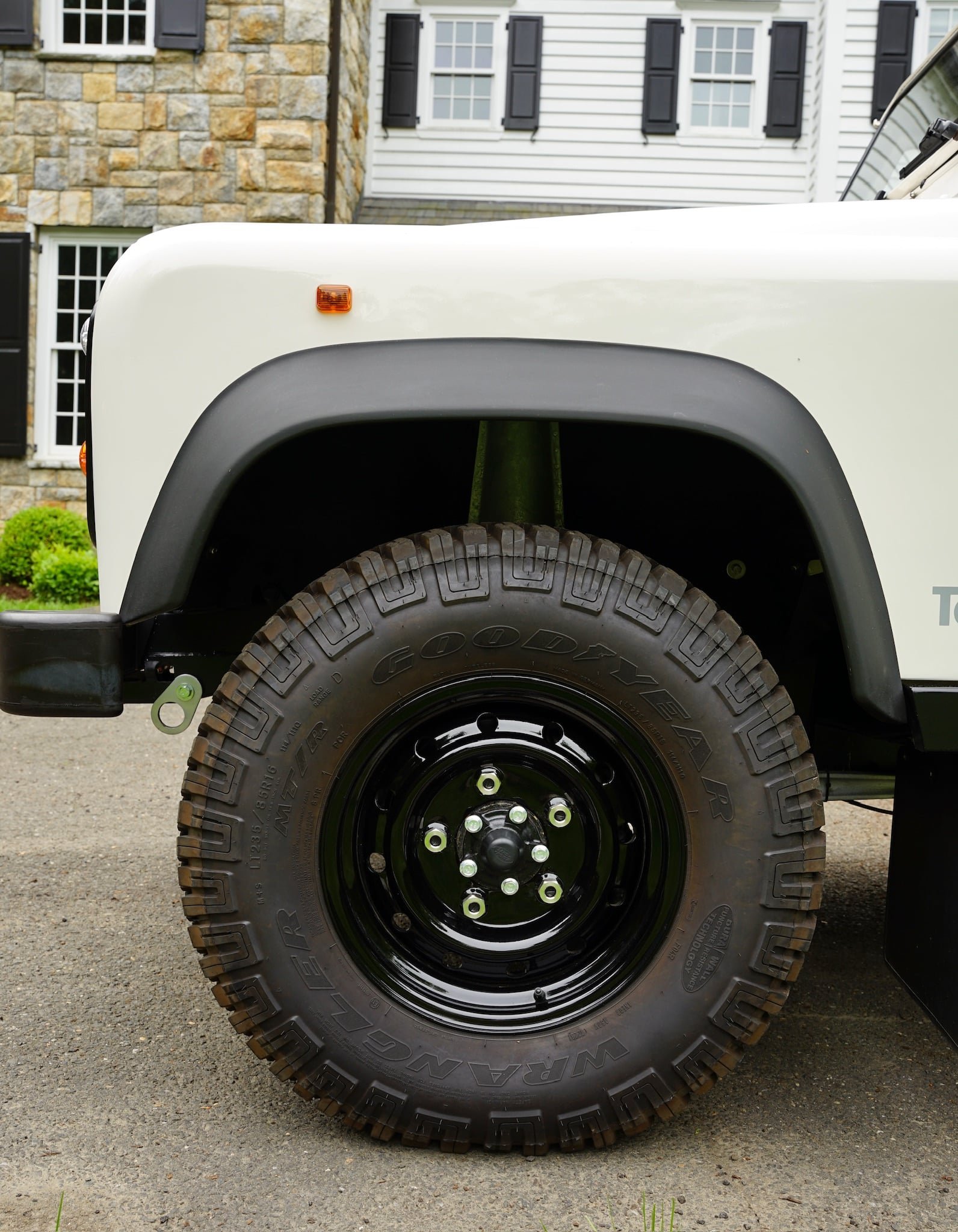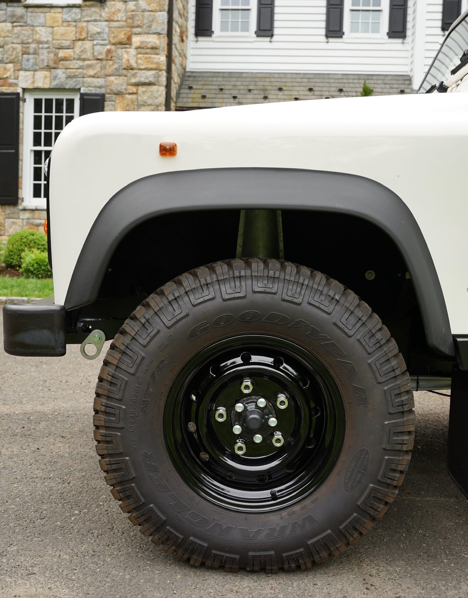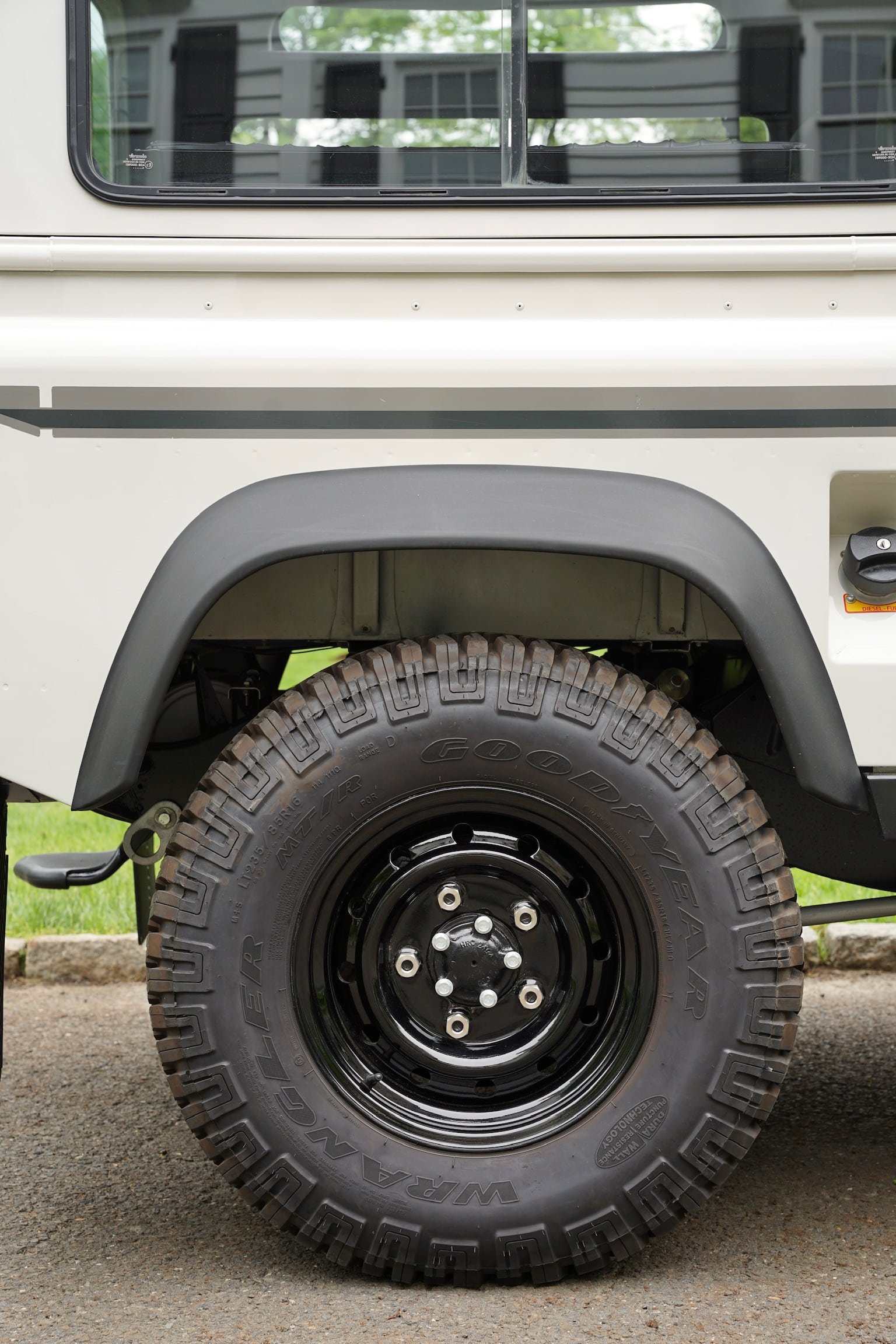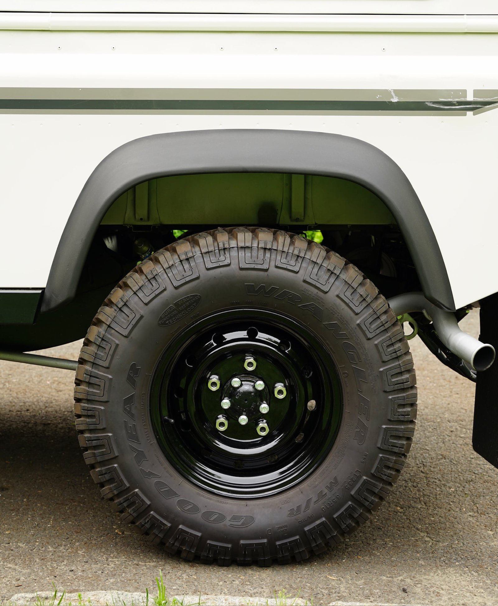 We’ve installed a set of 5 heavy duty “wolf” steel wheels, used by the British Ministry of Defense of military vehicles. These are the toughest, most resilient wheels for off-road use, and are beloved for their utilitarian aesthetics.