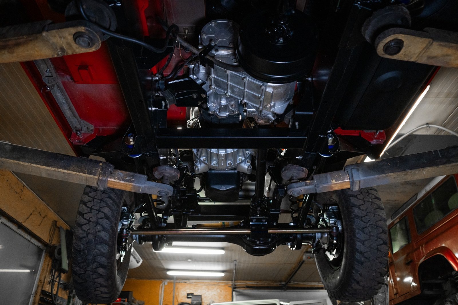 The R380 5-speed gearbox and LT230 transfer case were inspected and serviced, maintaining their well-known durability and smooth operation.
