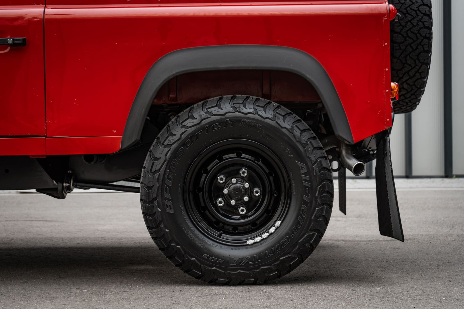 The Defender sits on Wolf steel wheels, selected for their strength and proven reliability in military applications, fitted with BF Goodrich KO2 235/85R16 all-terrain tyres to provide the ideal balance of comfort, grip, and durability.