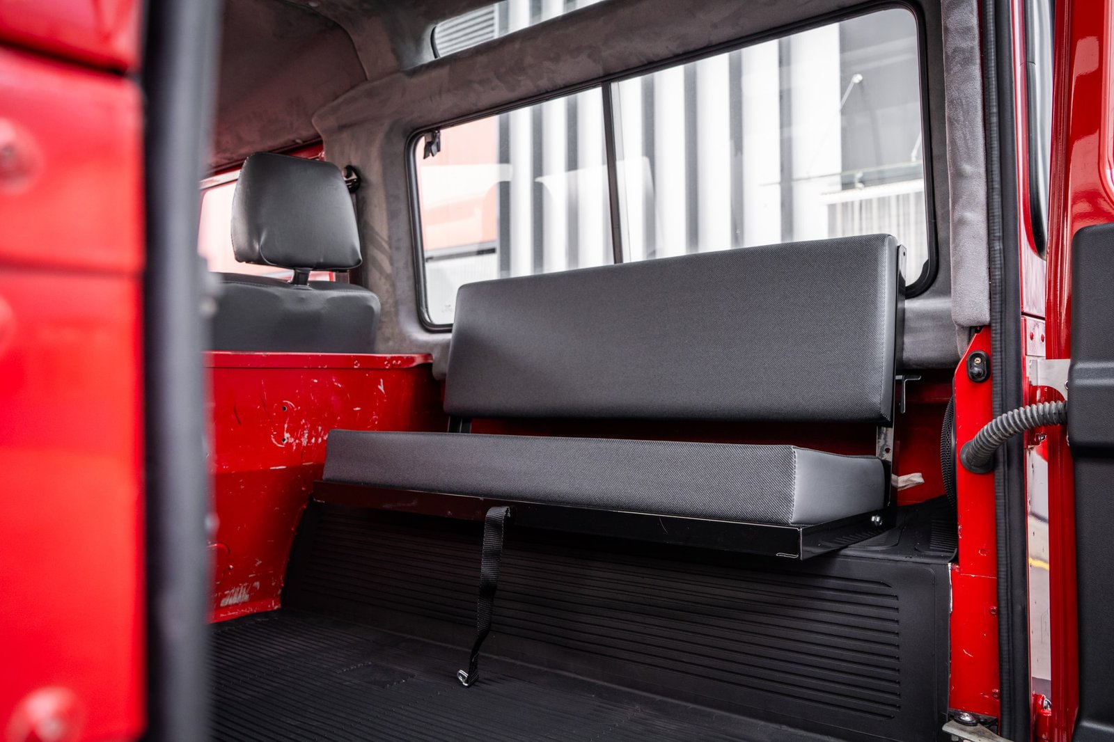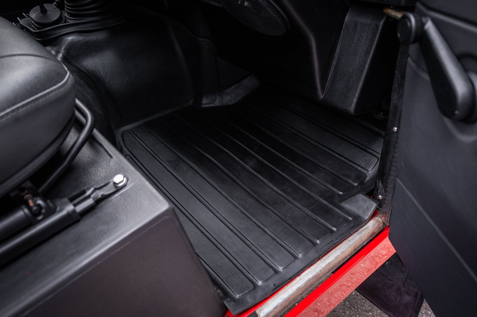 This build retains 90% of its factory Portofino Red paint across all original body panels. Never repainted, never repaired, and displaying beautifully honest, well-earned patina, the vehicle remains one of the most original Defenders of this era still in existence. Only three areas were refinished to ensure structural longevity: