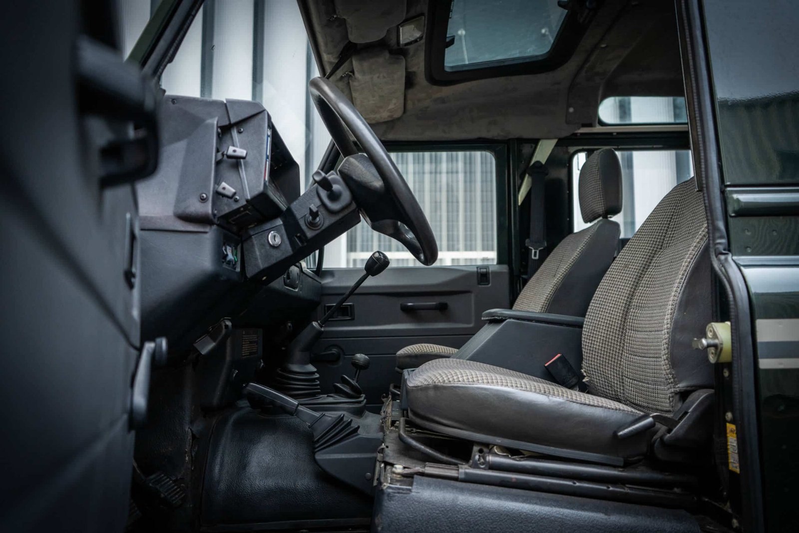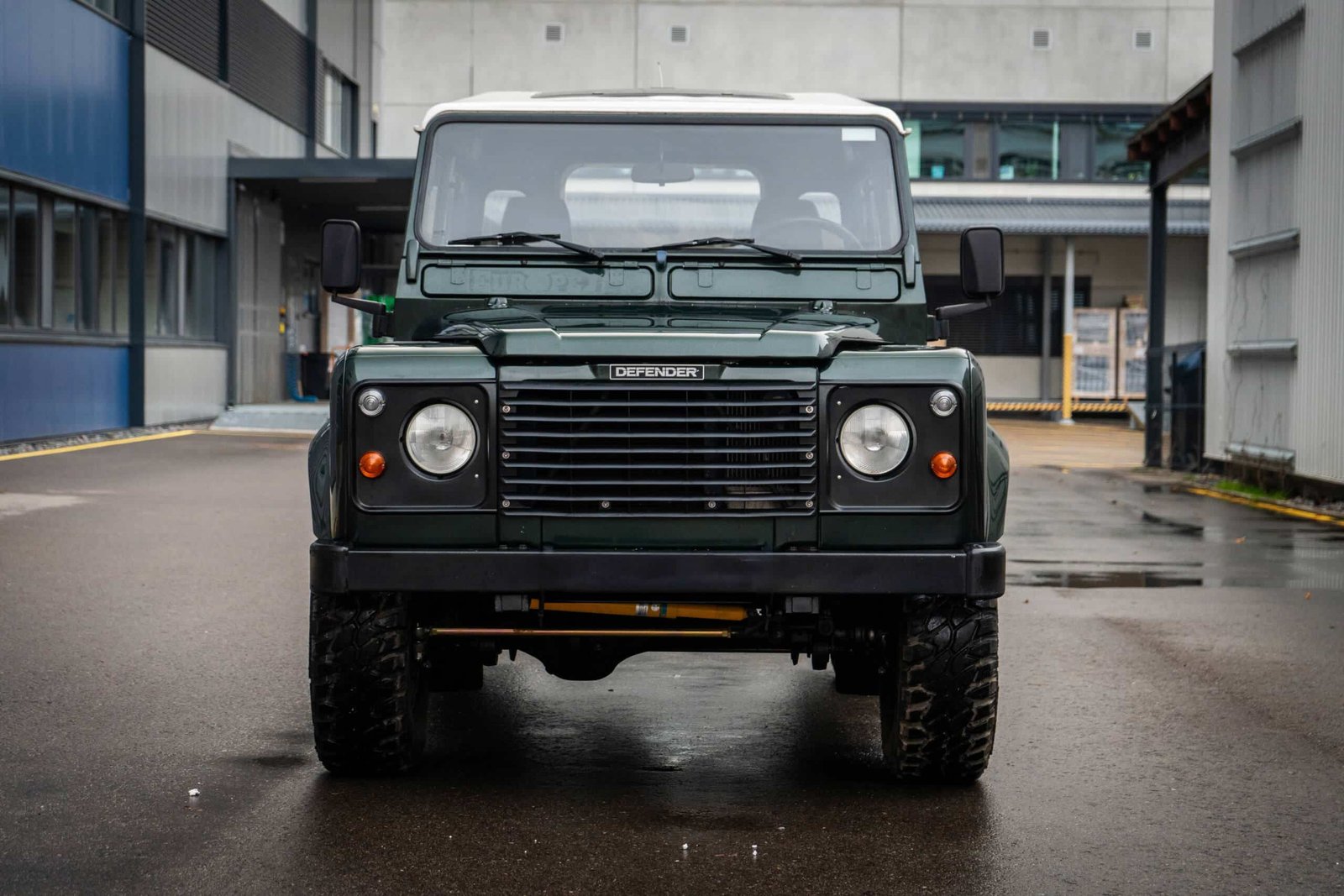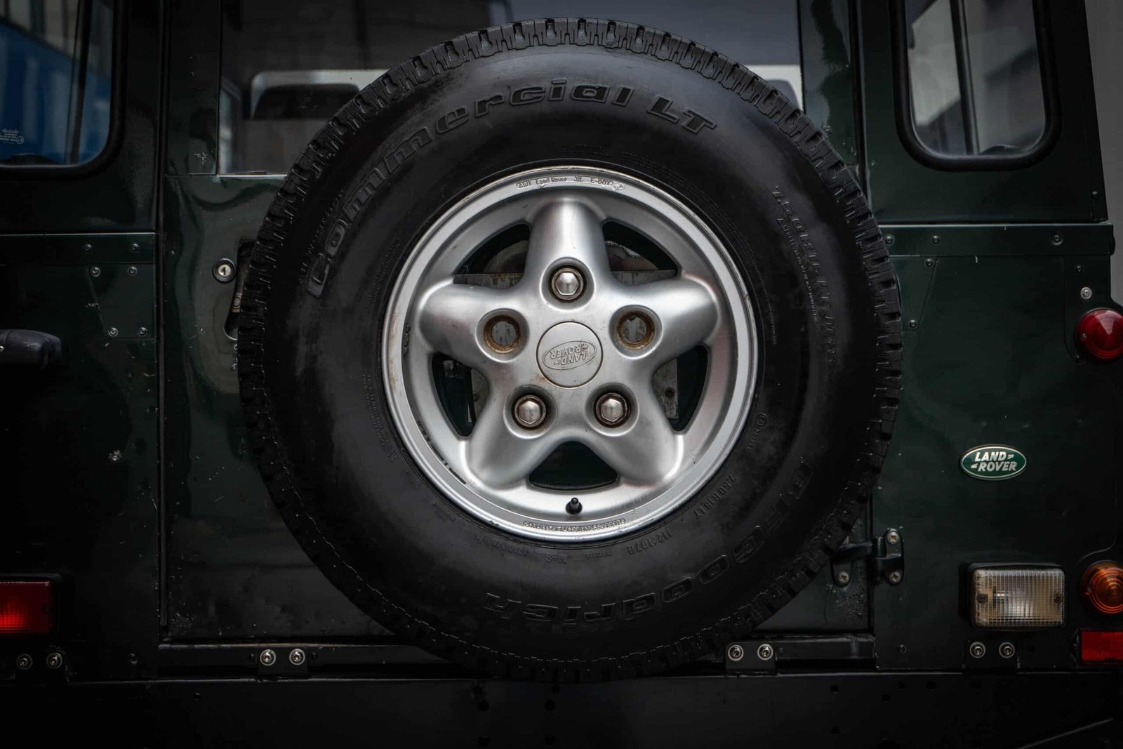 The Defender retains its correct wheels and tyres appropriate for its original specification. (If you’d like to specify tyre brand and condition, I can add that line.)