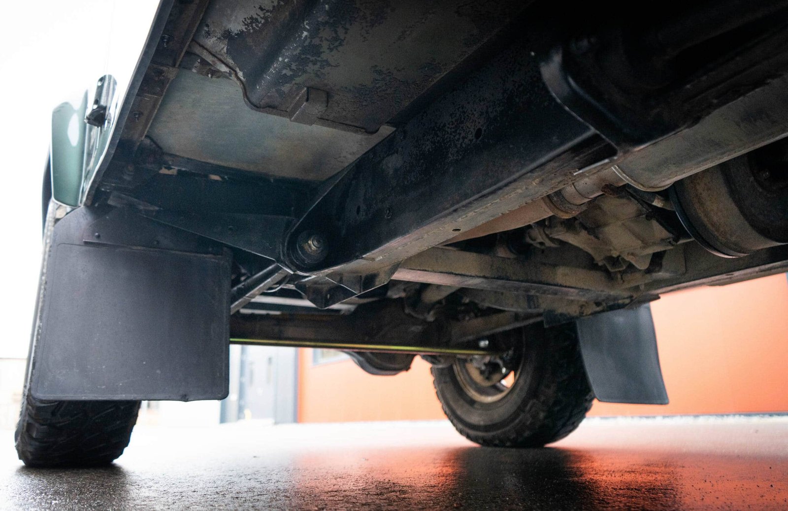 The chassis presents in remarkable original condition for its age, showing none of the typical corrosion often seen on northern European Defenders. Its preservation is due in part to long-term dry storage and limited use.